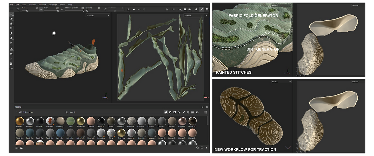 CREATE a 3D scene for KOLON's new camping footwear Cacon using substance 3D